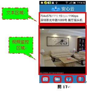 在軟件主界面,即設(shè)備列表處,點(diǎn)擊設(shè)備即可進(jìn)入實(shí)時(shí)預(yù)覽視頻。如圖17所示。點(diǎn)擊