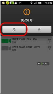 “更改帳號”,彈出“是否更改帳號”界面選擇“是”,然后在重新輸入要更改的“用戶賬號”及“用戶密碼”登錄即可。如圖所示。
